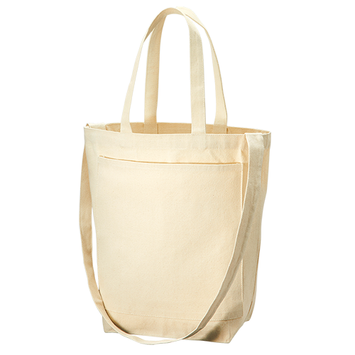 トート時も肩掛けしやすいよう長めのハンドルに! フロントポケットはうちわが入るサイズ