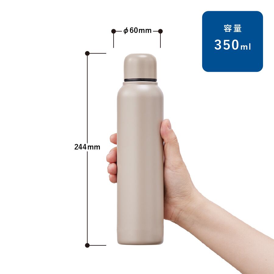 スリムなボディなのでバッグにサッとしまえる350ml容量の持ち運びに便利なサーモボトルです。
