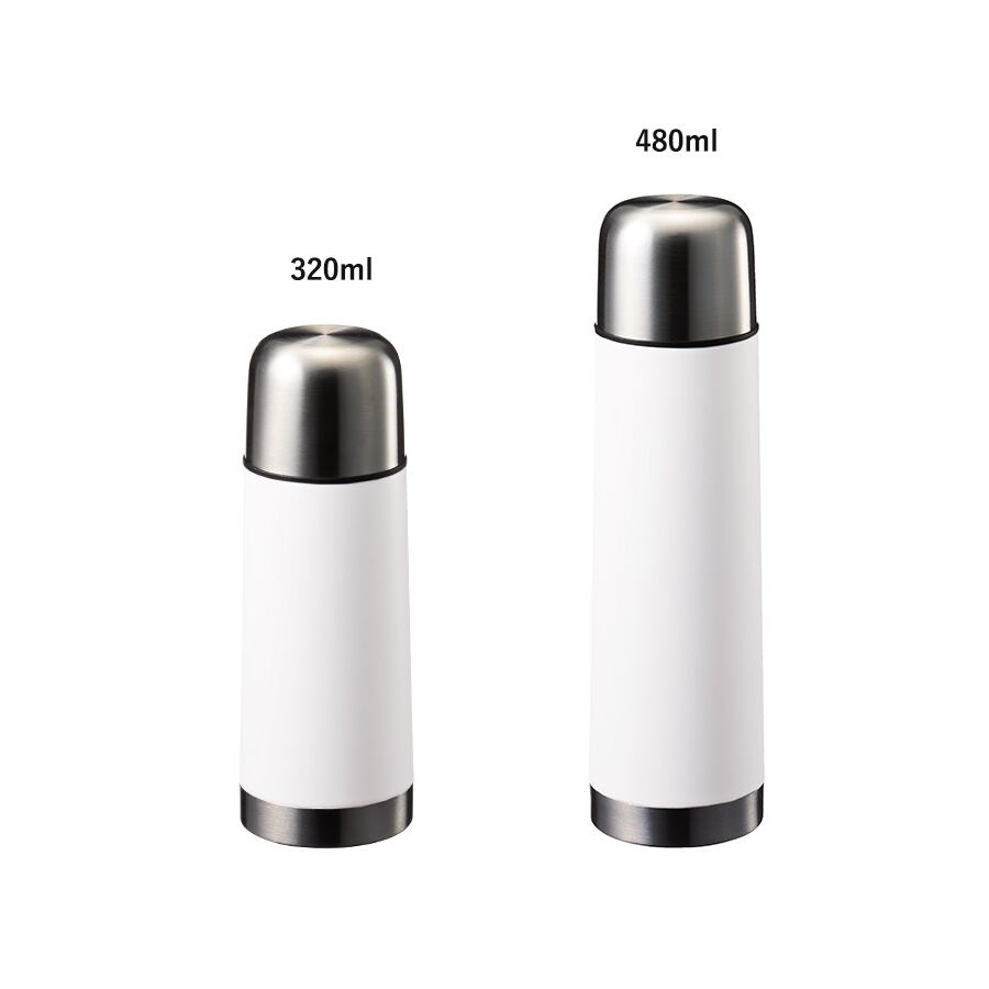 昔から愛されているデザインであるコップ付ボトルが登場。近年、直のみよりも衛生的だとあえてコップ付を選ばれる方々もいるそうで、再注目されています。真空2重構造なので、冷たい飲料は冷たく、温かい飲料は温かく、温度をしっかりキープ。シーズンレスで繰り返し使用するMYボトル習慣は、今すぐできるエコ活動です。シンプルですがマット塗装を施し、おしゃれな雰囲気に仕上げました。同一規格で320mlのタイプもございます。