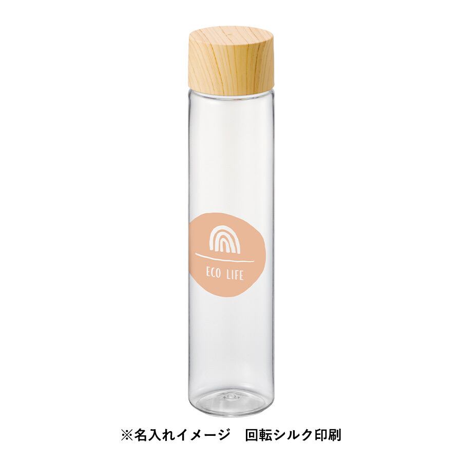 木目デザインでナチュラルな印象を与える、邪魔にならないスリム型のクリアボトルです。女性や子供でも飲み切りやすく、持ち運びもしやすいコンパクトサイズです。出勤や登校時、お散歩時になどのちょっとしたおでかけに便利な飲みきりサイズになっております。フタ部分は木目調のナチュラル、ブラウン、ホワイトの3色展開となっており、大人っぽさを演出します。ボトル全面に印刷が可能ですので、ノベルティはもちろん、ライブやイベントのグッズなどの物販品にもおすすめです。