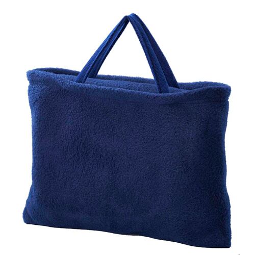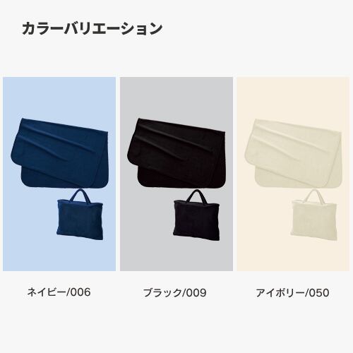 ひざ掛けにも肩掛けにも丁度いいサイズのブランケットにバッグ付きが登場しました。バッグに収納した際にクッションとしてもご利用いただける2WAY仕様です。持ち運びしやすいサイズですのでお出かけの際などにぴったりの商品です。ベーシックなネイビー、ブラック、アイボリーの3色をご用意致しましたので世代を問わずご利用いただけます。親子参加型のイベントのノベルティやアパレルブランドのノベルティまで幅広くご提案頂けます。